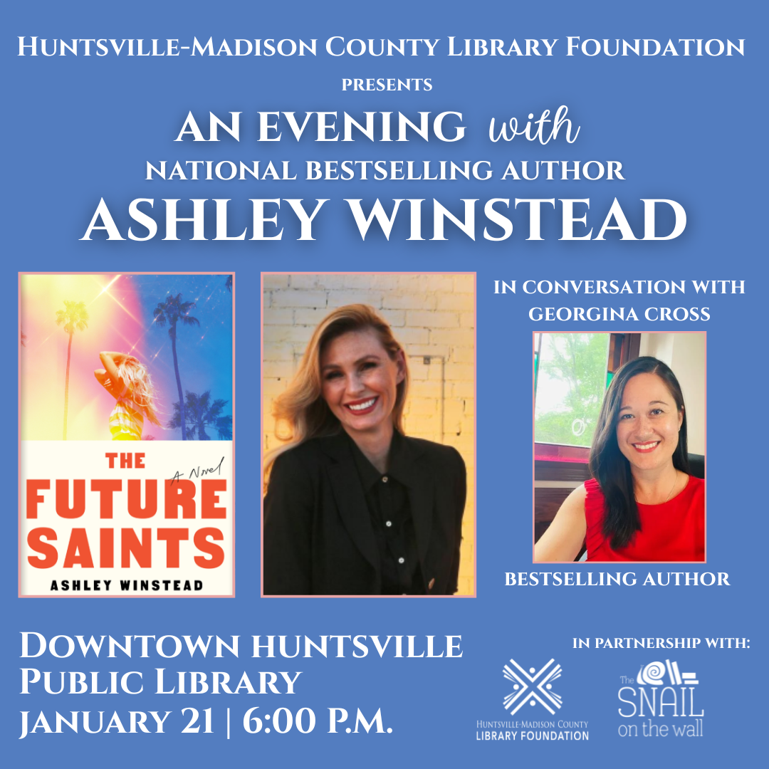 Join us on Wednesday, January 21, at 6:00 p.m. at the Downtown Huntsville Library for An Evening with Ashley Winstead, author of The Future Saints. Ashley will be in conversation with fellow bestselling author, Georgina Cross.