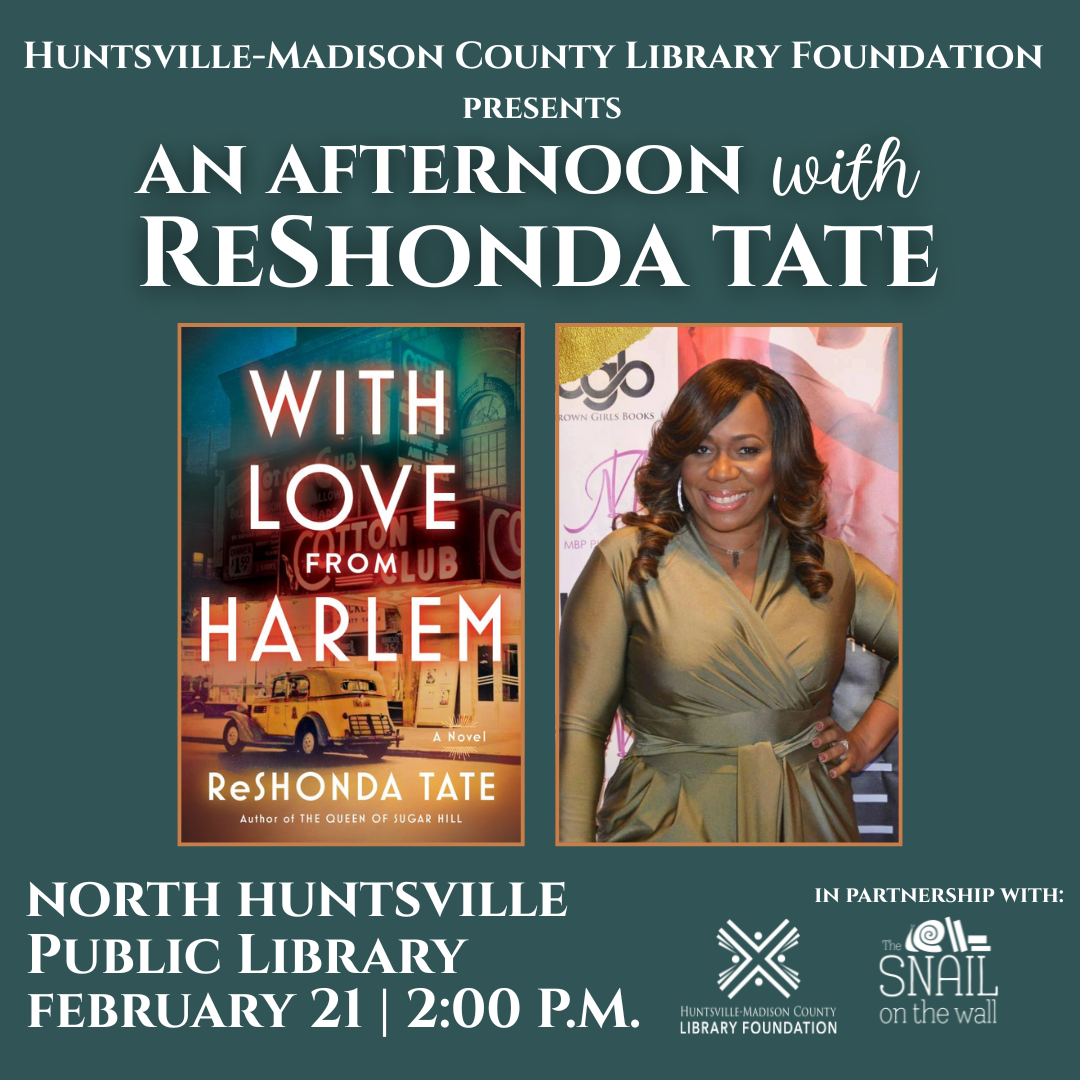 Celebrate the upcoming release of With Love From Harlem with us as we welcome ReShonda Tate to the North Huntsville Public Library on Sunday, February 21, at 2:00 p.m.