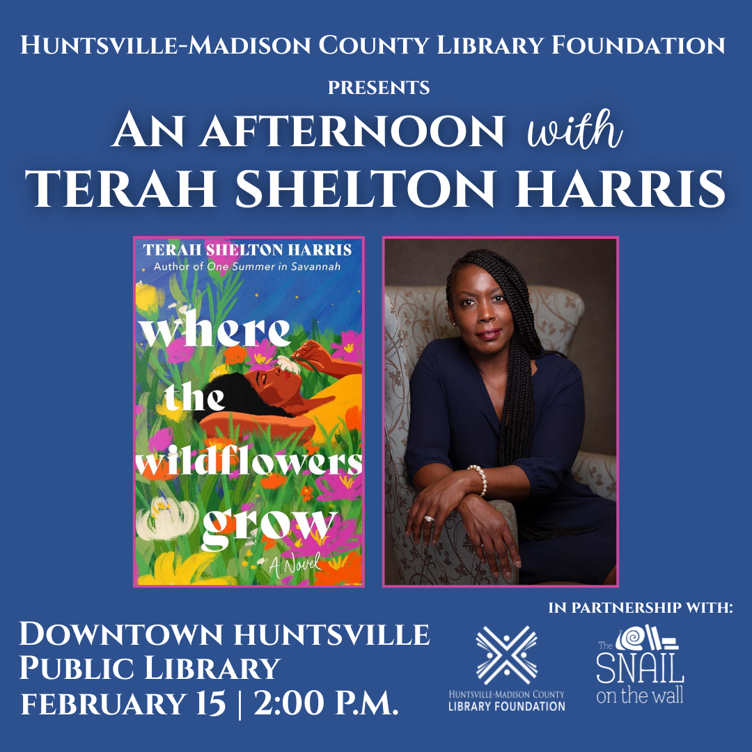 We're thrilled to host Terah Shelton Harris on Sunday, February 15, at 2:00 p.m. at the Downtown Huntsville Library as we celebrate her new release, Where the Wildflowers Grow.