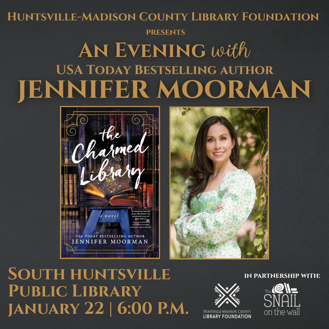 Join us on Thursday, January 22, at 6:00 p.m. at the South Huntsville Public Library as we sit down with Jennifer and discuss the power of libraries, plot inspiration, and how she brings characters to life.